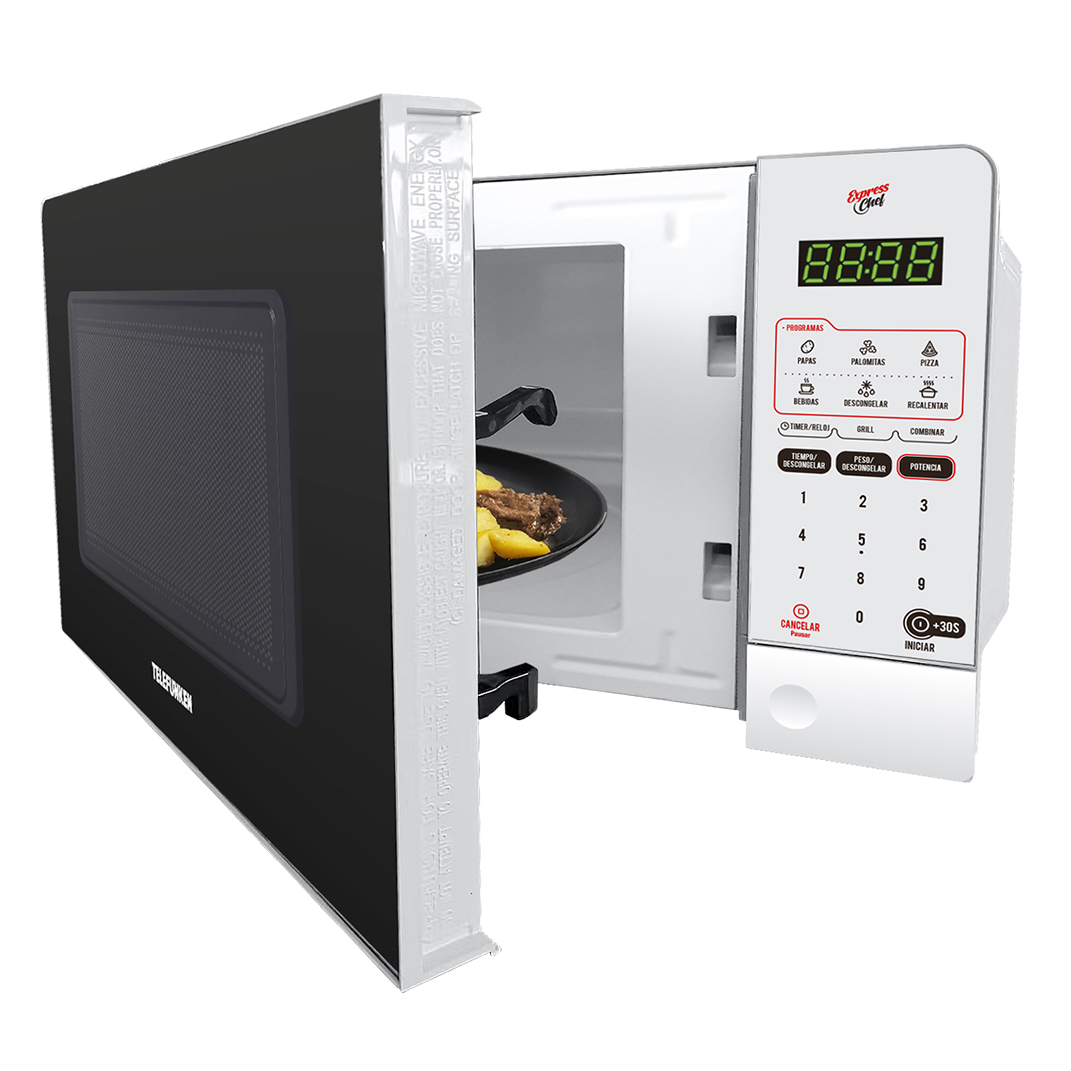 El Microondas Telefunken TF-20DG es un modelo práctico y versátil, ideal para el uso diario. Con una capacidad de 20 litros y 700W de potencia, te permite cocinar y calentar tus alimentos de forma eficiente. Su principal característica es la función combinada de Grill + Microondas, que te permite no solo calentar, sino también dorar y gratinar. Incluye una bandeja giratoria, 6 programas preestablecidos, y la opción de descongelar por peso o tiempo. Además, cuenta con una traba de seguridad para niños y un inicio rápido de 30 segundos.